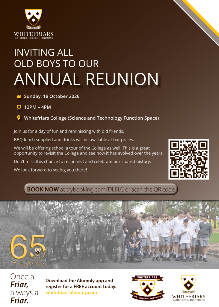 We are thrilled to invite you to the Whitefriars College Alumni Reunion BBQ!